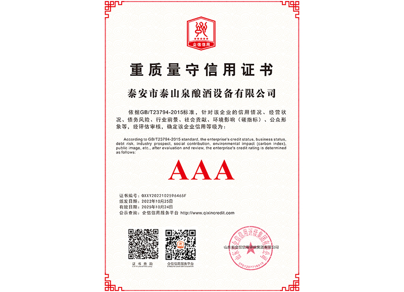泰安市泰山泉釀酒設備有限公司,是一家專業從事釀酒設備機械化研發并集技術咨詢,工程設計,制造安裝,人員培訓及售后服務為一體的綜合性企業,本公司主要產品為:大曲清香、小曲清香、大曲醬香、大曲濃香等香型白酒機械化設備?! ”竟九c中國科學院自動化研究所簽訂技術服務合同,引進先進技術,研究生產全自動化機械釀酒設備,由中國科學自動化研究所的技術支持,打造最先進的生產釀酒設備,公司有信心打造全國最先進白酒...